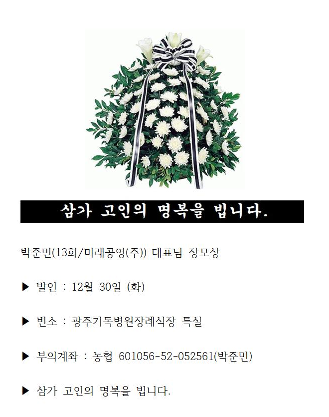 부고 | 박준민(13회/미래공영(주))대표님 장모상