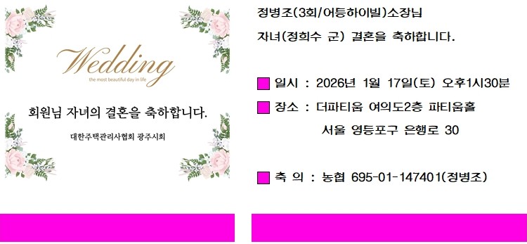 결혼 | 정병조(3회/어등하이빌)소장님 자녀결혼