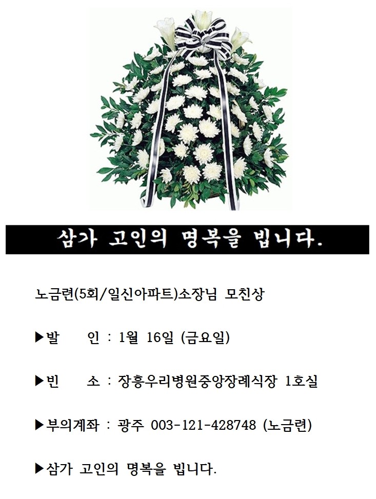 부고 | 노금련(5회/일신아파트)소장님 모친상