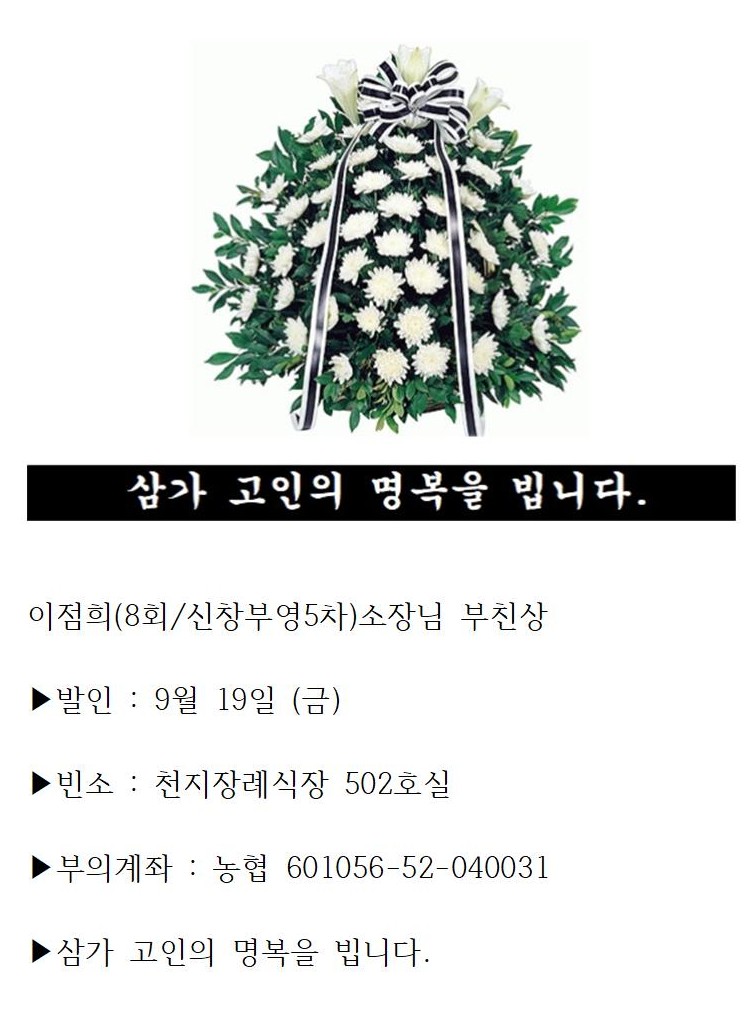부고 | 이점희(8회/신창부영5차)소장님 부친상