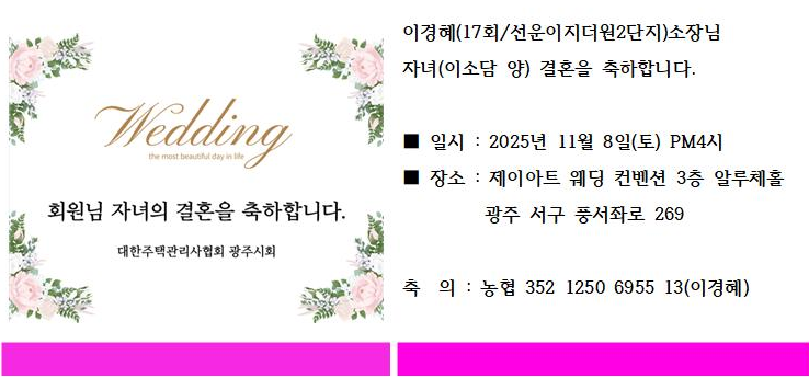 결혼 | 이경혜(17회/선운이지더원2단지)소장님 자녀결혼