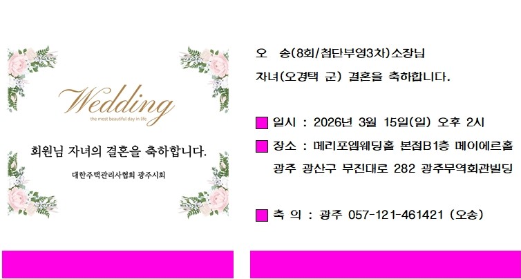 결혼 | 오송(8회/첨단부영3차)소장님 자녀결혼