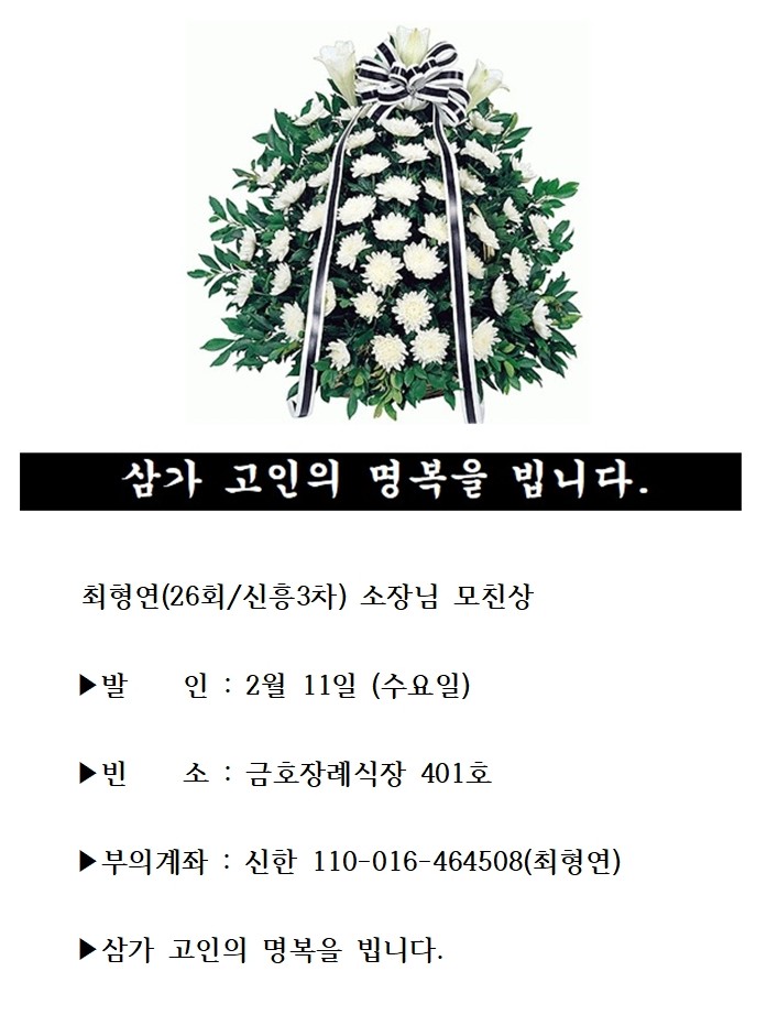 부고 | 최형연(26회/신흥3차)소장님 모친상