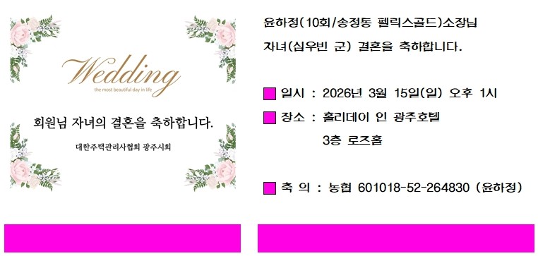 결혼 | 윤하정(10회/송정동 펠릭스골드)소장님 자녀결혼