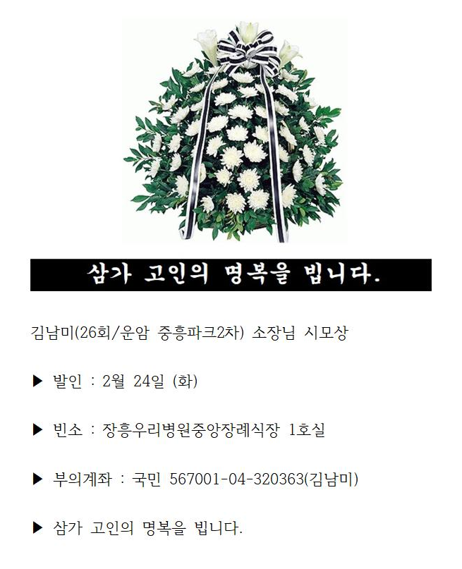 부고 | 김남미(26회/운암 중흥파크2차)소장님 시모상